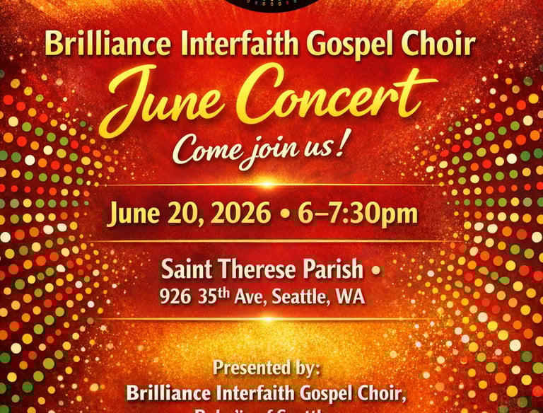 Experience the Joy! Season closing concert at St Therese Parish, Seattle. Free Admission. All are welcome!